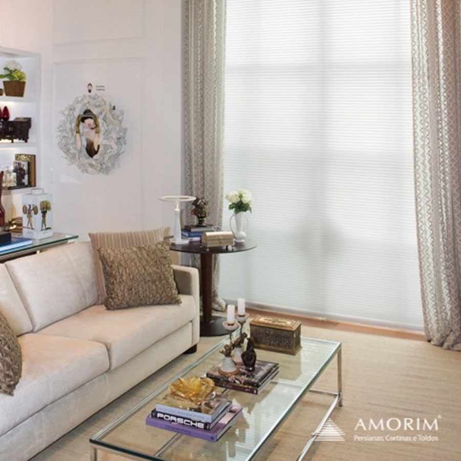 A Cortina Melíade proporciona leveza e sofisticação aos ambientes. Possui delicadas lâminas de tecido que refletem a luz ultravioleta, impedindo que a claridade entre no ambiente, proporcionando privacidade.