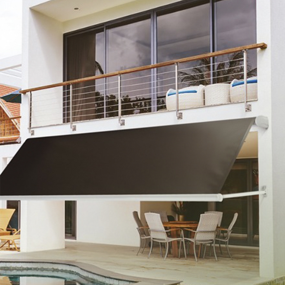 De fácil manuseio, o toldo bali possui braços pivotantes que proporcionam a tensão do tecido e estabilidade da barra frontal contra pequenas correntes de ar.
